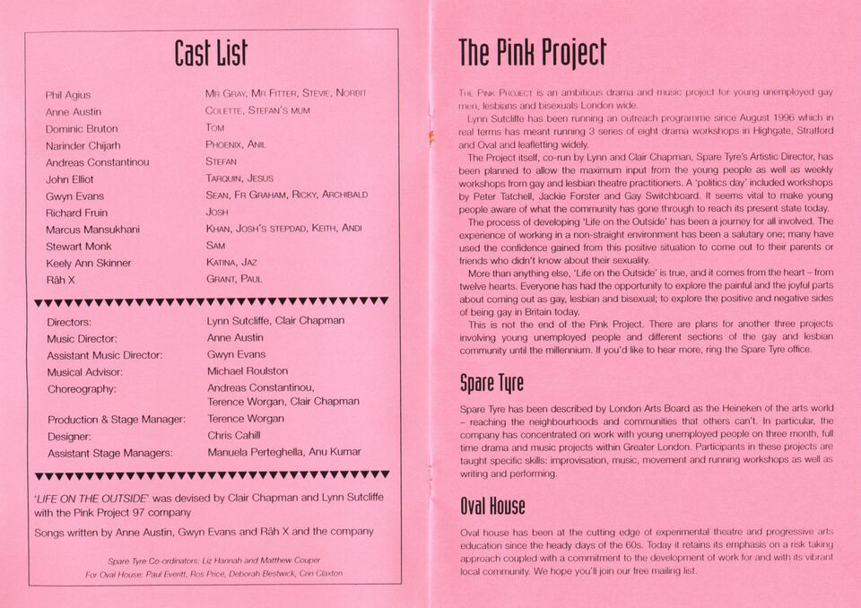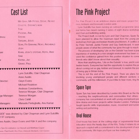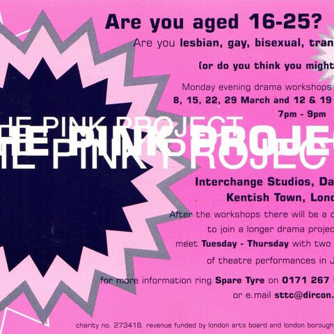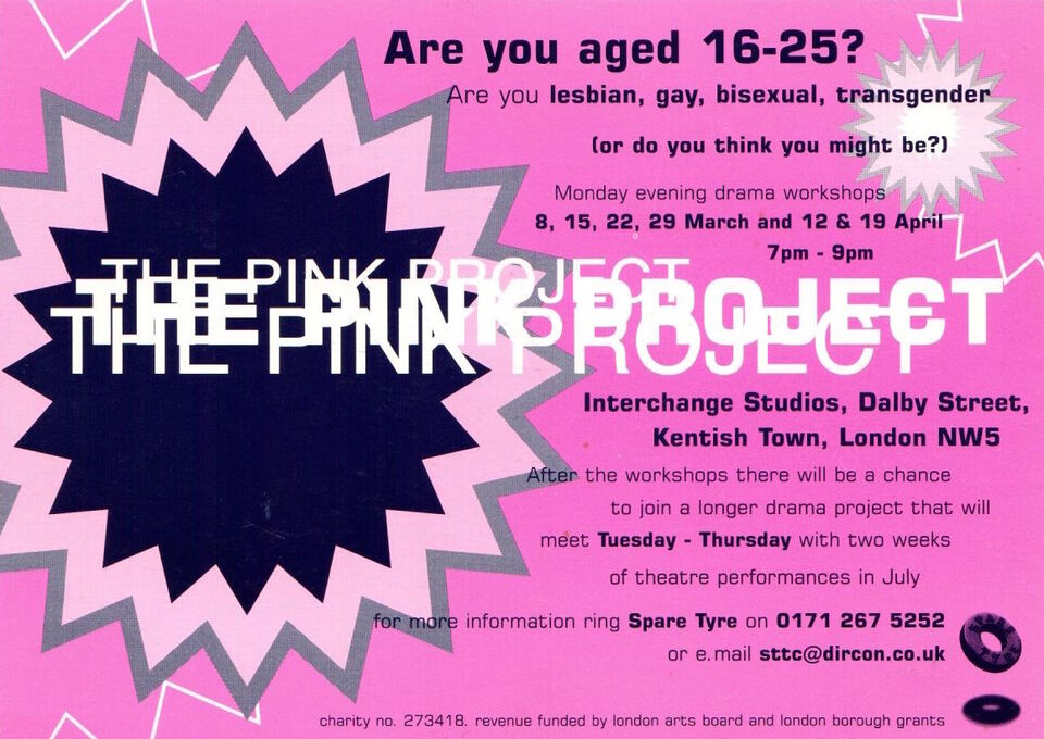 The initial aim of The Pink Project (1997 - 2007) was to create a safe space for young people from the LGBTQ+ community to explore and share their experiences of coming out. Projects like Burning came from The Pink Project initiative.