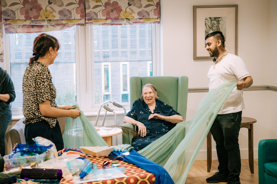 With thanks to repeat funding from the Croydon Loves You grant, we're running a longer series of sensory workshops for care home residents in Croydon. We're returning to the Acacia Care Centre and will also be meeting residents at Heavers Court Care Home. The workshops are designed for people with moderate to advanced dementia and are led by our team of experienced facilitators. This year, Jazmin Qunta is back at the helm, alongside Lara Marshall and Esme Allman. They will lead sensory activities such as:
